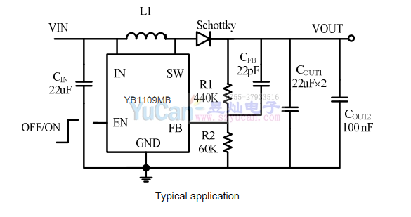 YB1109是一款具有固定工作頻率的高效電流模式升壓轉(zhuǎn)換器。 YB1109集成了一個(gè)非常低內(nèi)阻的NMOSFTET,以減少功率損耗并實(shí)現(xiàn)高效率。最高效率高達(dá)93%。 1.2MHz工作頻率可最小化電感和電容值,內(nèi)部補(bǔ)償網(wǎng)絡(luò)減少外部元件數(shù)量。 SOT23-6封裝為PCb布局提供了最佳解決方案